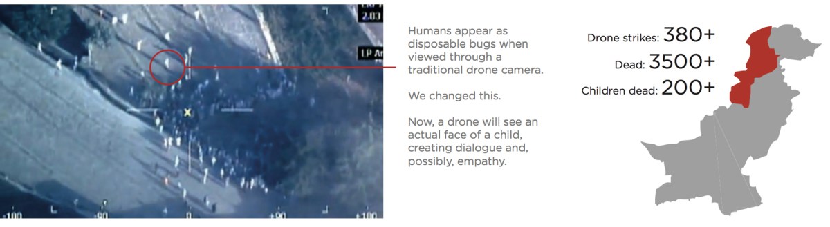 A giant art installation project that targets predator drone operators sitting thousands of miles away who refer to kills as BugSplats. Now they’ll see a child’s face instead.